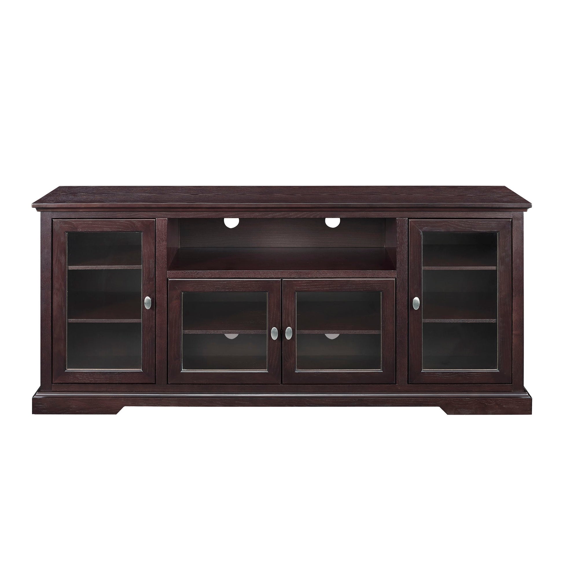 Transitional Classic 70" TV Stand For 80" TVs With 4 Glass Doors - Espresso