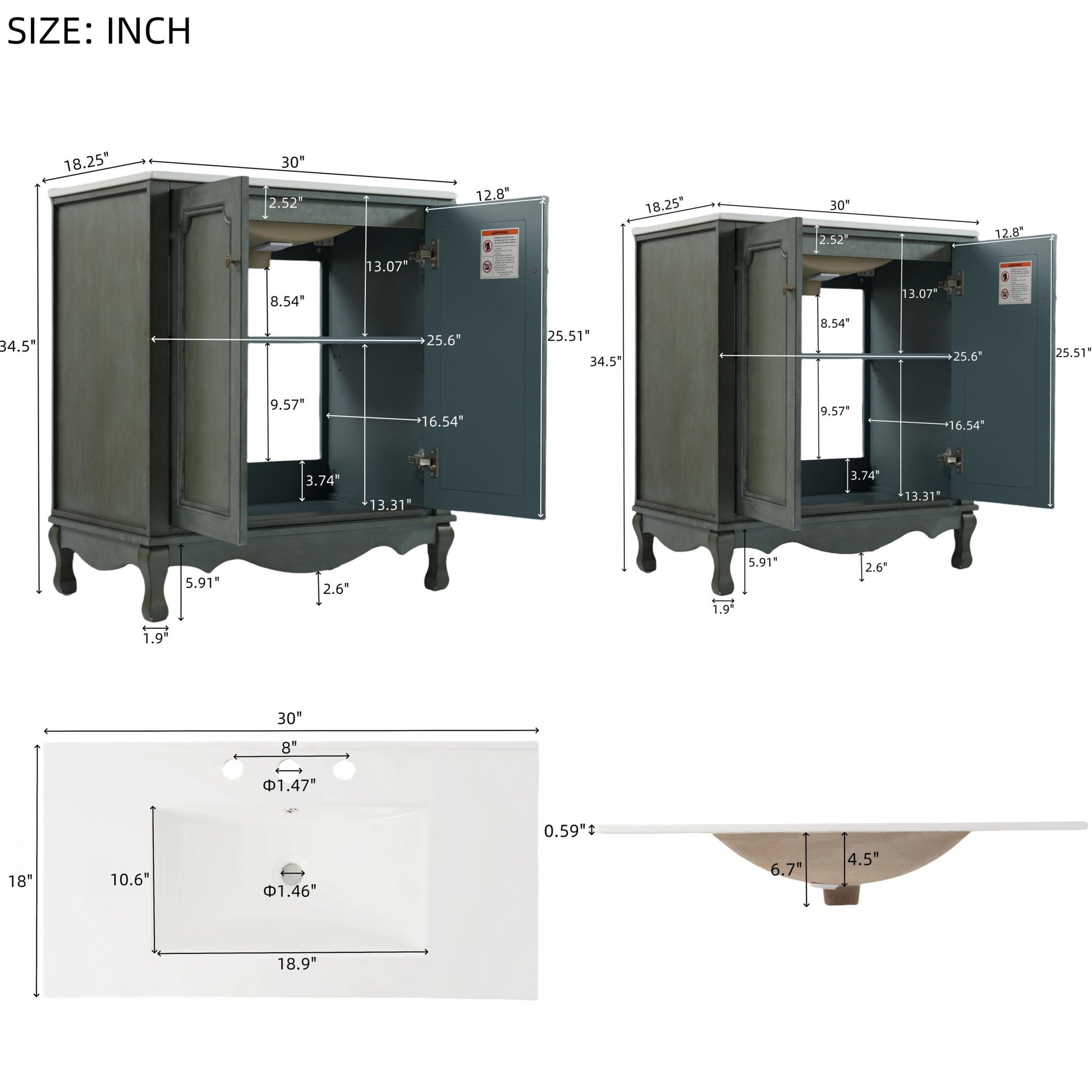- Seamless Cohesive Vintage Charm: Matching 30-inch vanities with identical antique knobs and weathered finish create a unified retro look when combined.