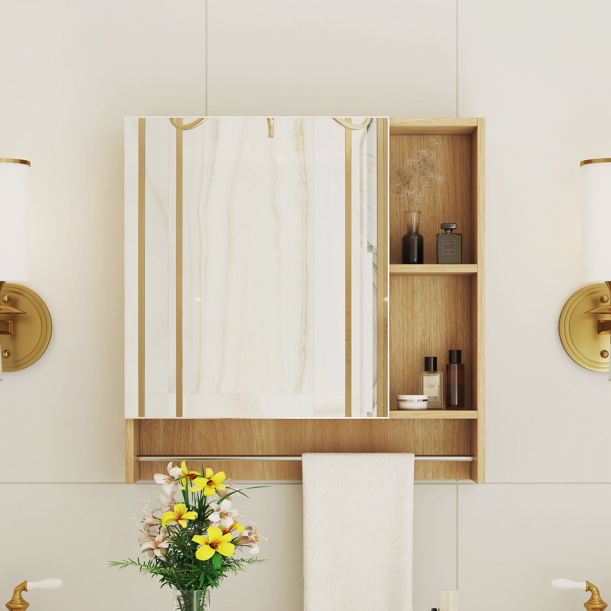 Wall Mounted Bathroom Storage Cabinet With Mirror Door, Medicine Cabinet, Over The Toilet Storage Cabinet With Shelves And Towel Rack - Burly Wood